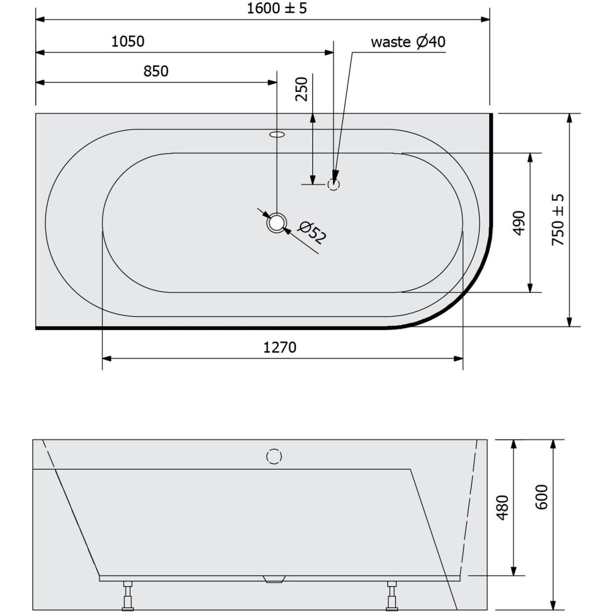- Abflussdurchmesser: 52 mm