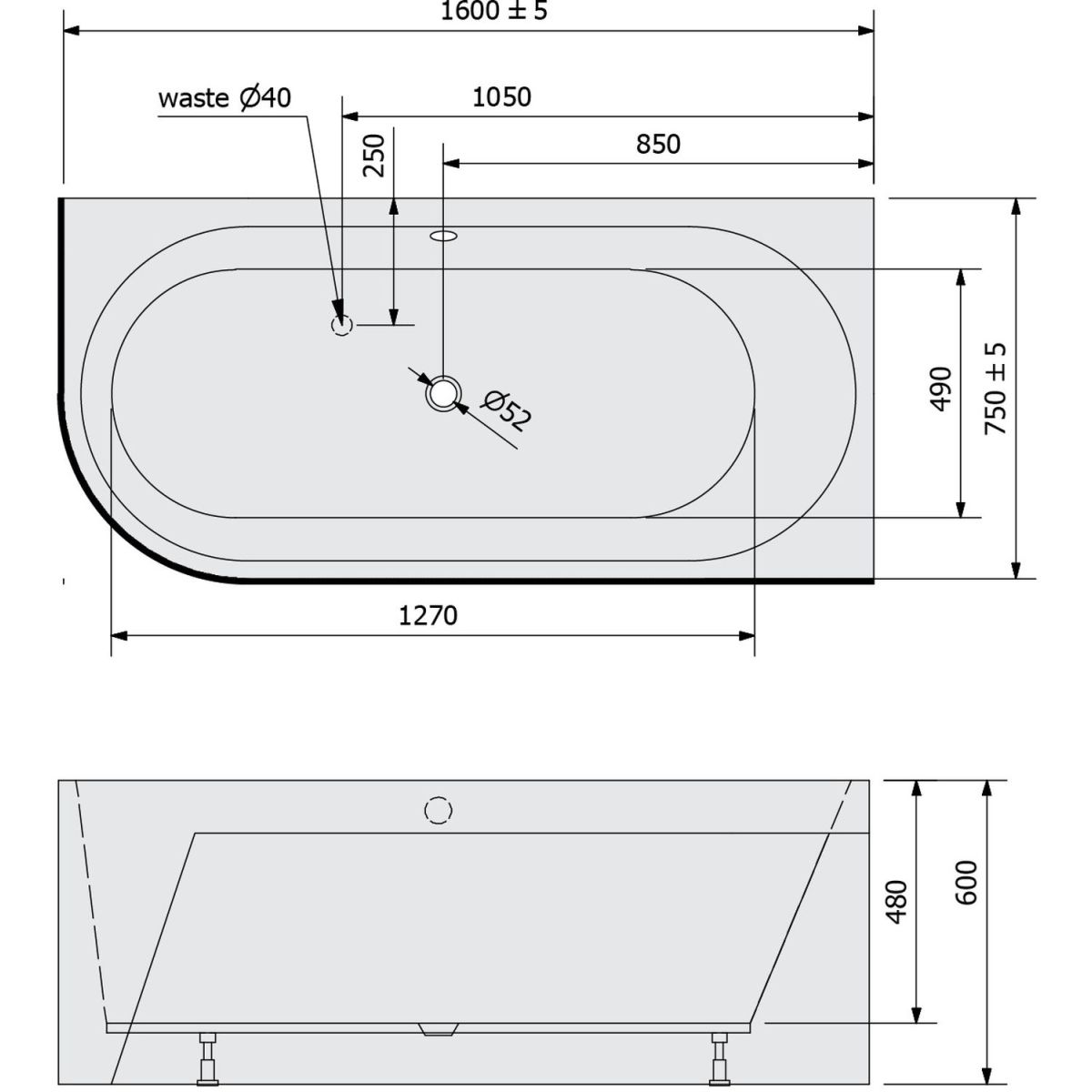 - Abflussdurchmesser: 52 mm