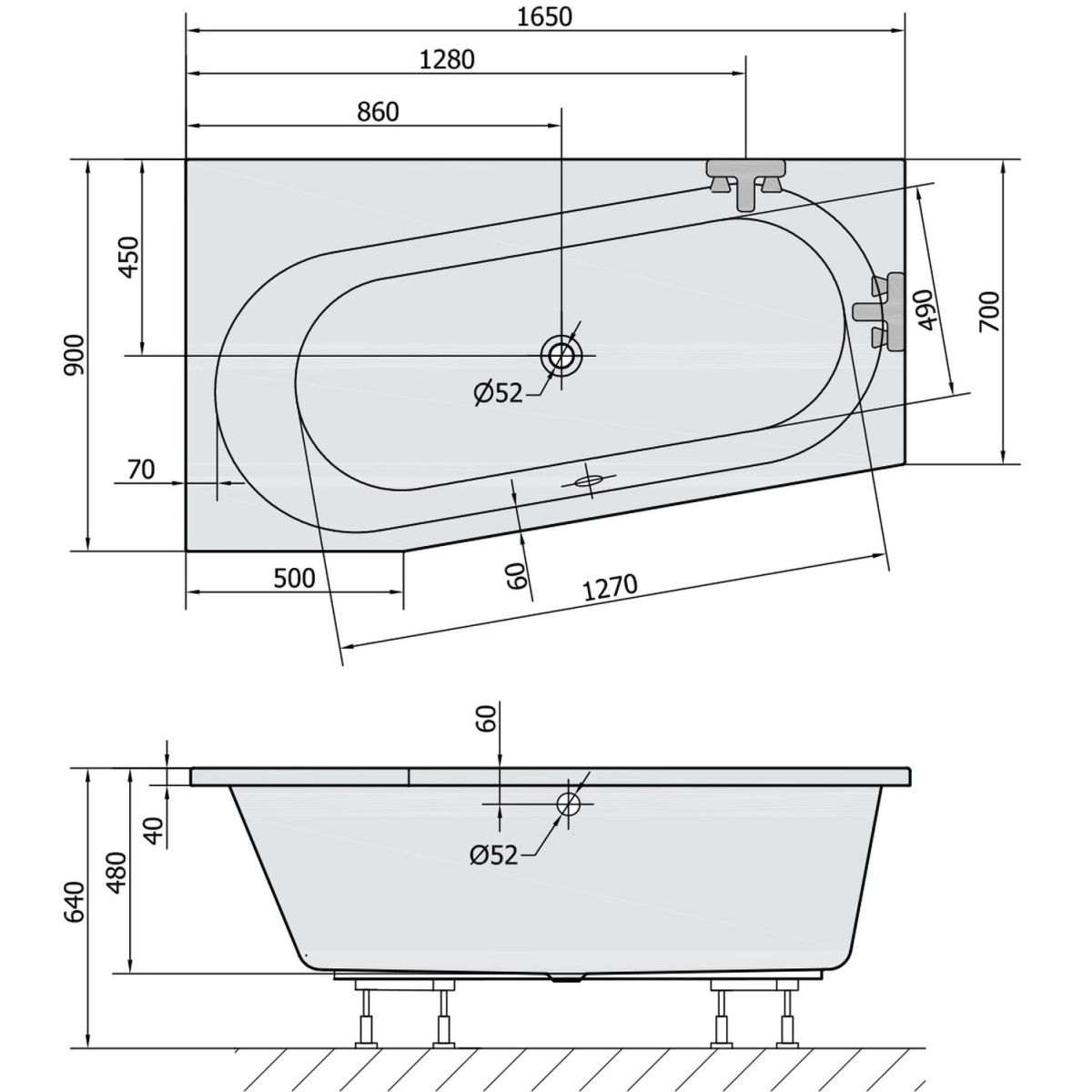 Polysan Astra Eckbadewanne 165x90 cm linksseitig weiß 30611