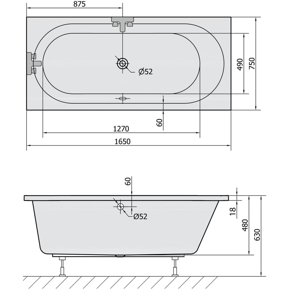 Polysan Astra Schlanke rechteckige Badewanne 165x75 cm weiß 32611S