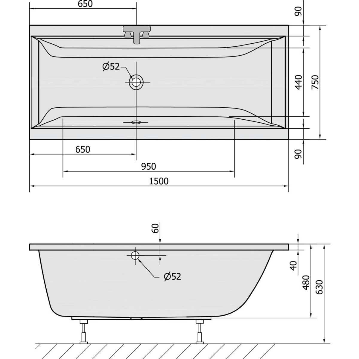 Polysan Cleo Rechteckige Badewanne 150x75 cm weiß 27611
