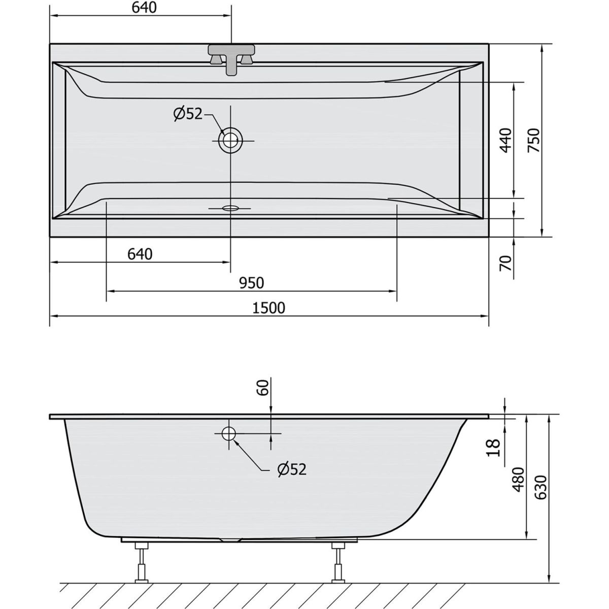 - Ablaufdurchmesser: 52 mm