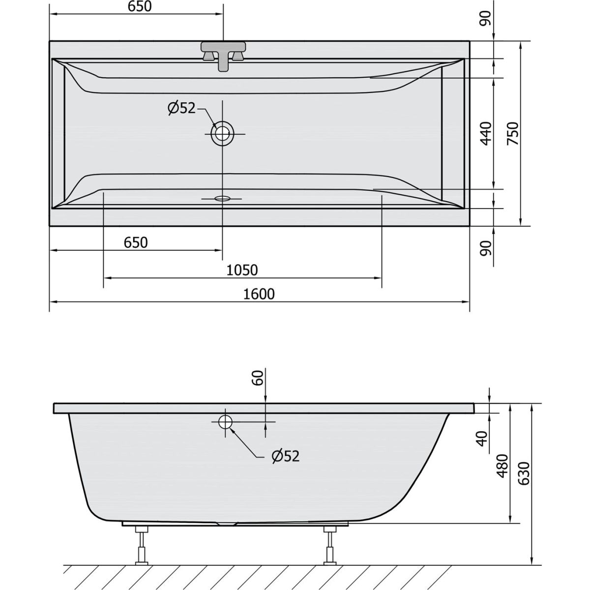 Polysan Cleo Rechteckige Badewanne 160x75 cm weiß 93611