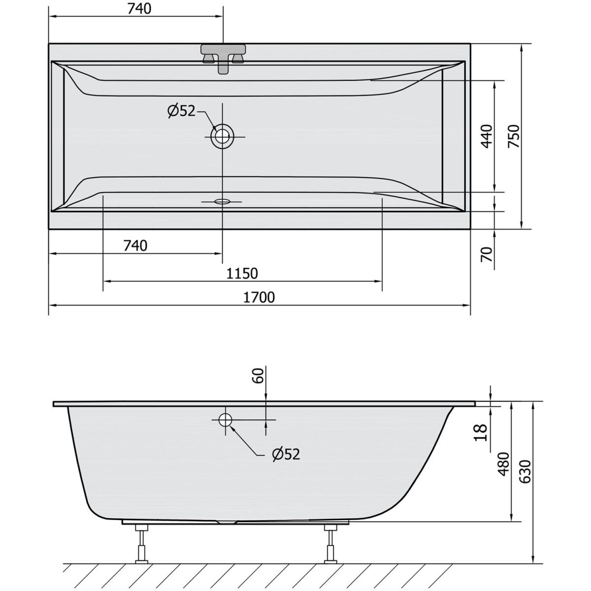 - Abflussdurchmesser: 52 mm