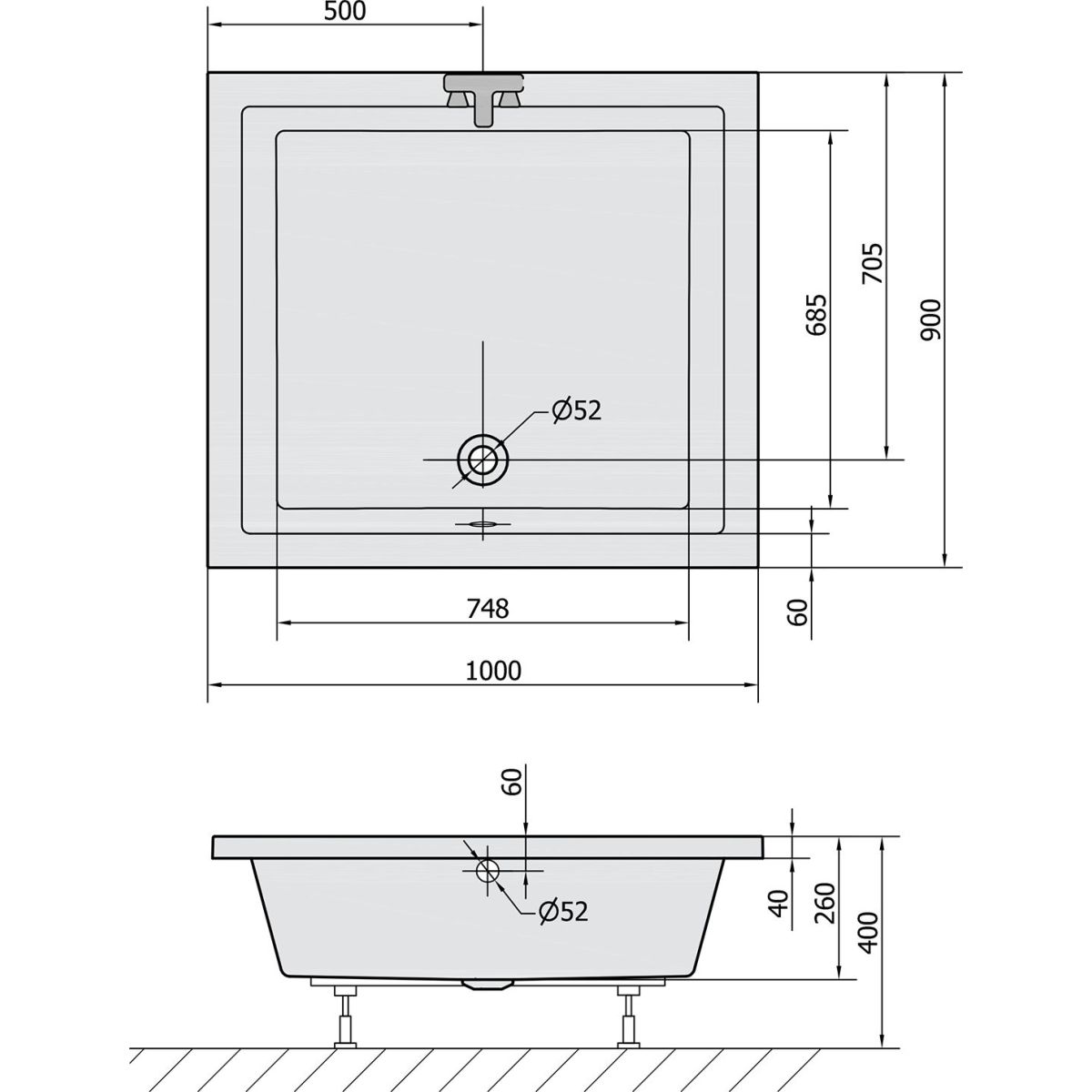 - Durchmesser des Abflusses: 52 mm