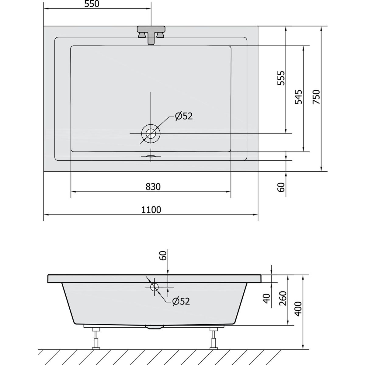 - Durchmesser des Abflusses: 52 mm