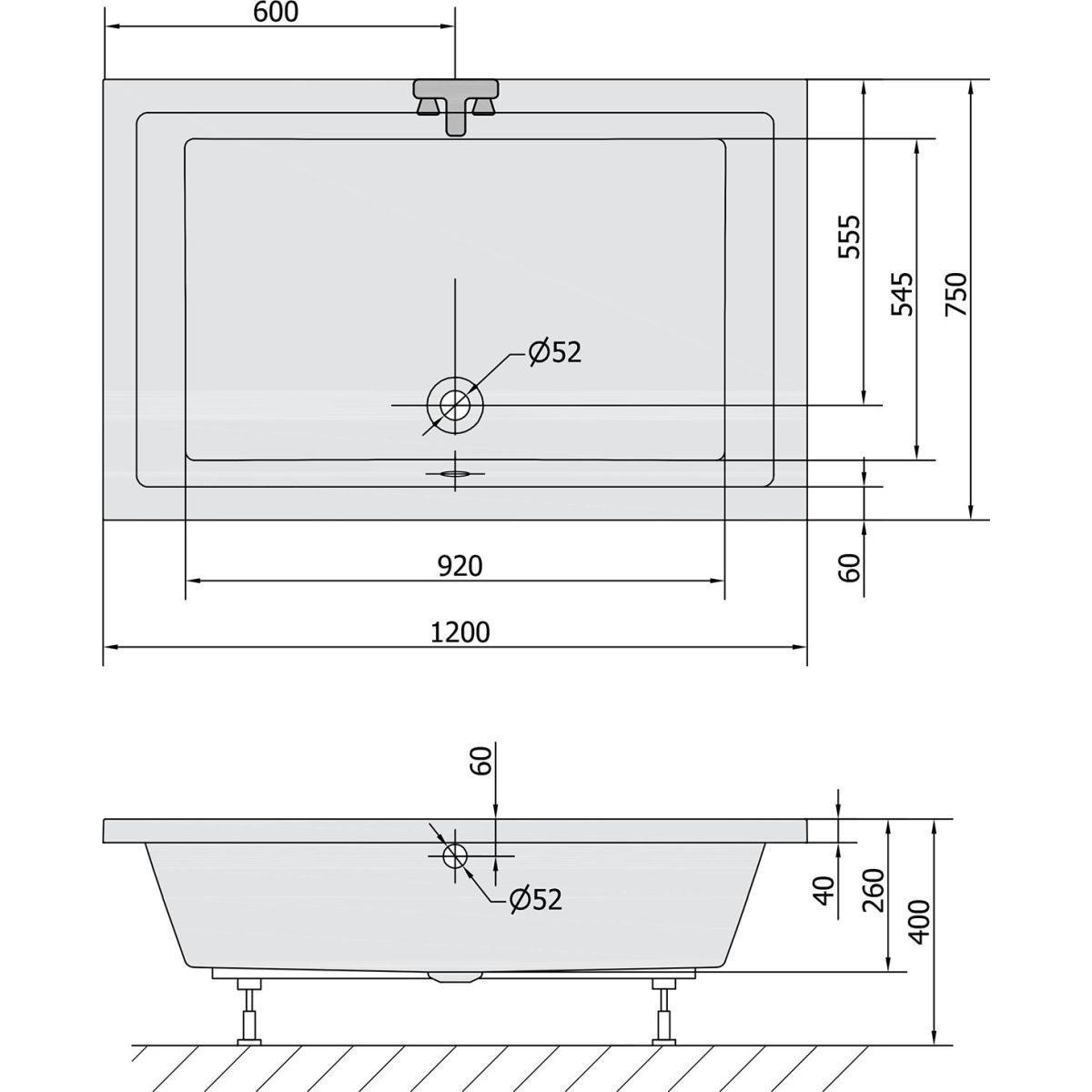 Polysan Deep Rechteckige Duschwanne 120x75 cm weiß 71564