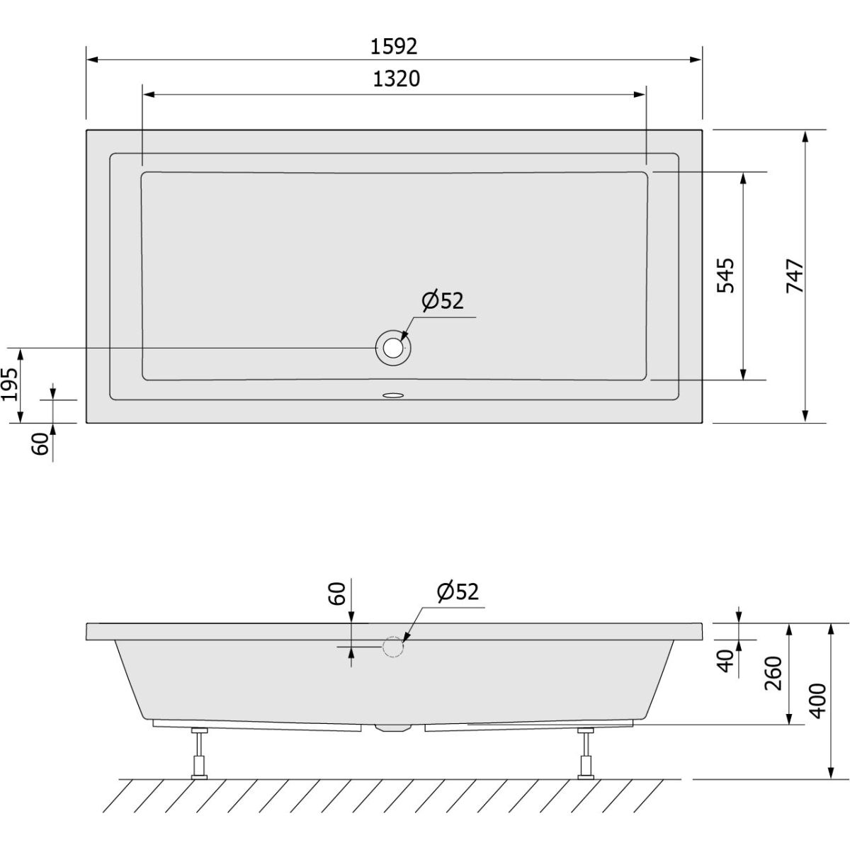 - Durchmesser des Abflusses: 52 mm