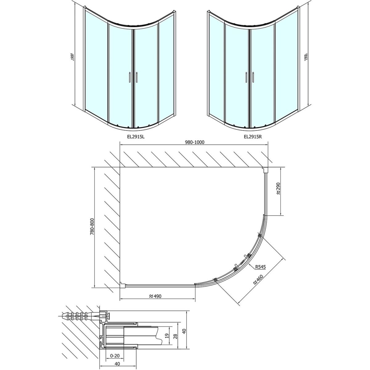 Polysan Easy Line Dusche 100x80 cm halbrund chrom Glanz/durchsichtiges Glas EL2915