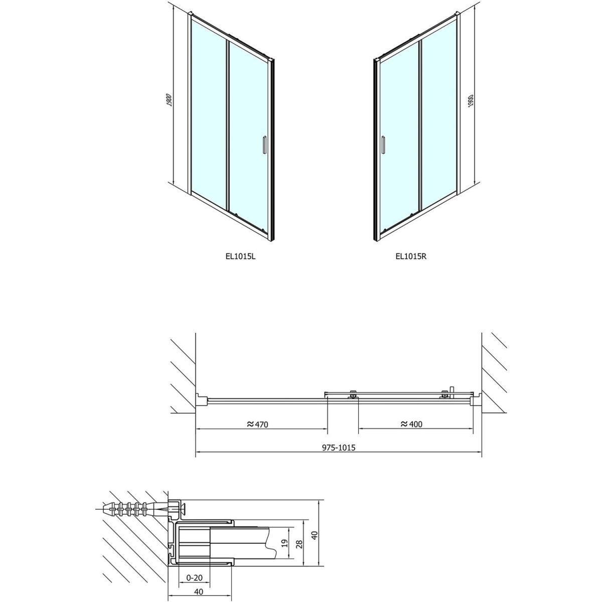 Polysan Easy Line Duschtüren 100 cm Schiebe- chrom Glanz/durchsichtiges Glas EL1015