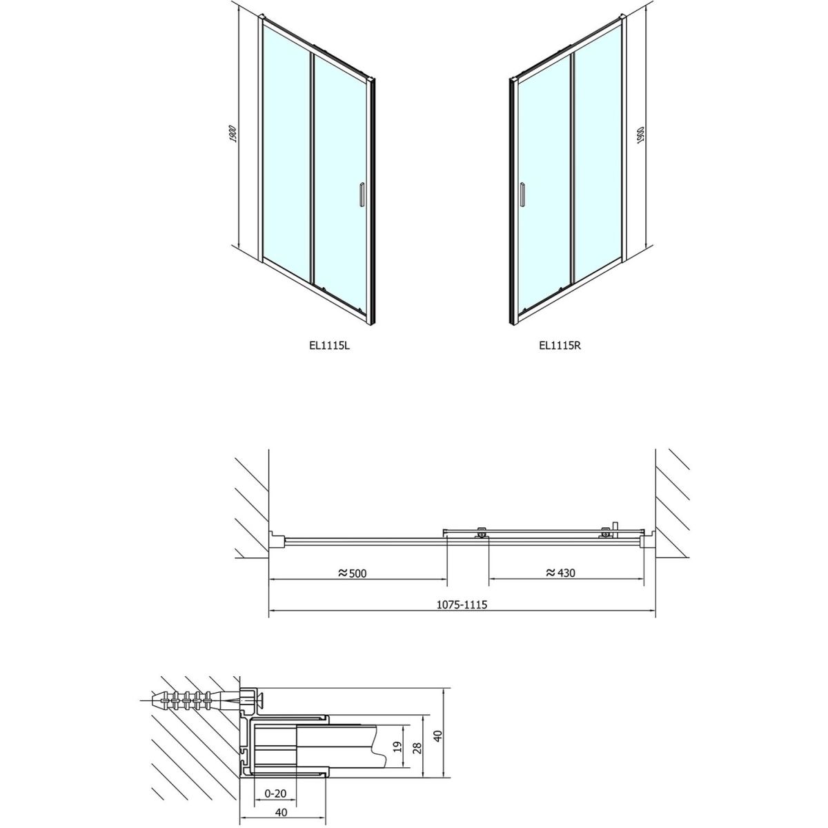 - Einbaumaß mit Seitenwand: 111 ± 2 cm