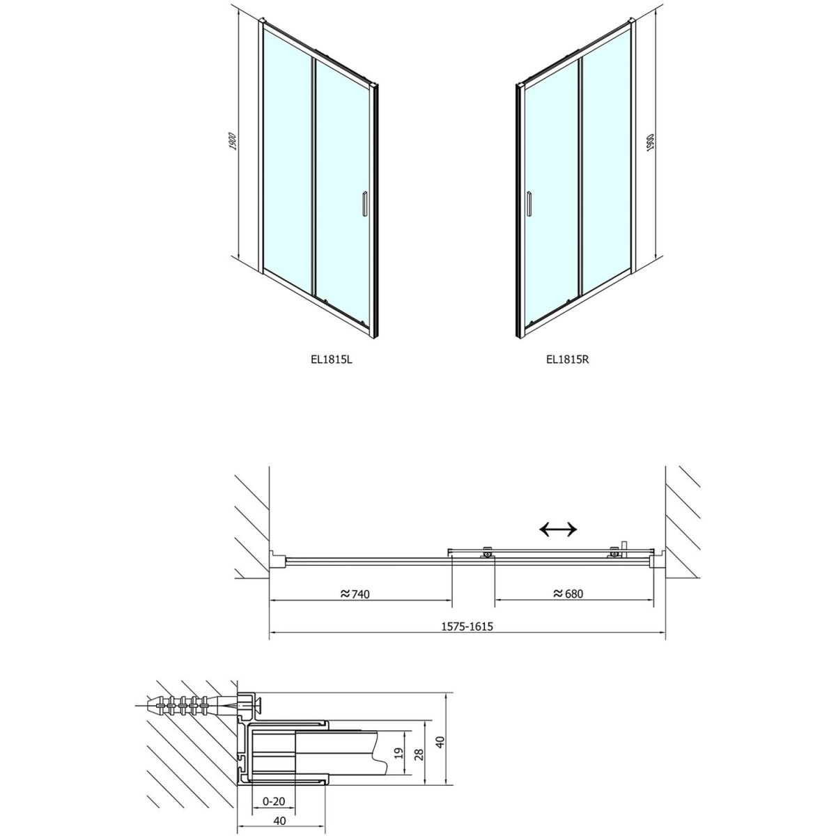 - Einbaumaß in der Nische: 159,5 ± 2 cm