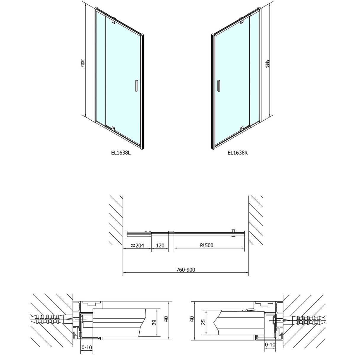 Polysan Easy Line Duschtüren 90 cm aufklappbar chrom Glanz/Mattglas EL1638
