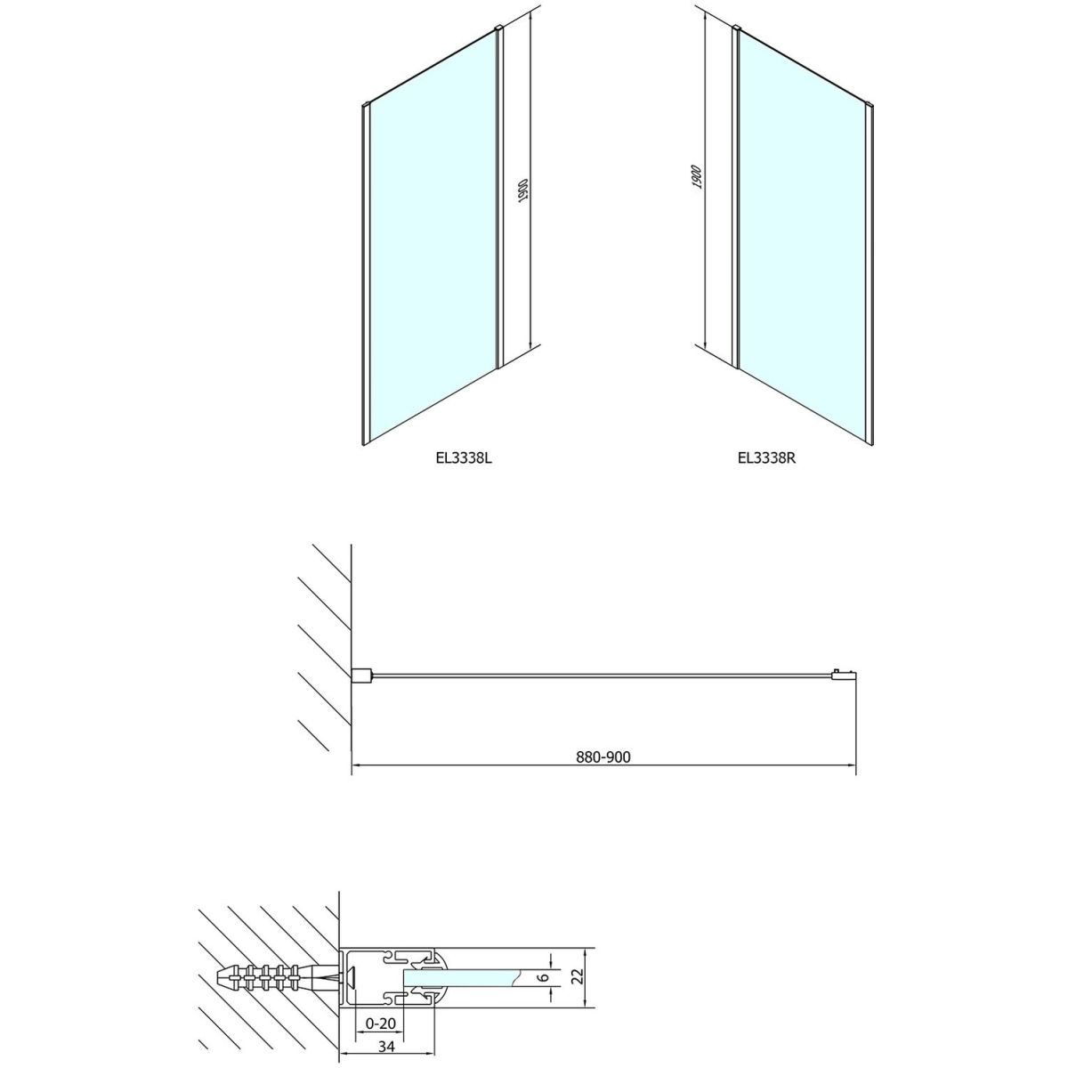 Polysan Easy Line Duschwand 90 cm chrom Glanz/Mattglas EL3338