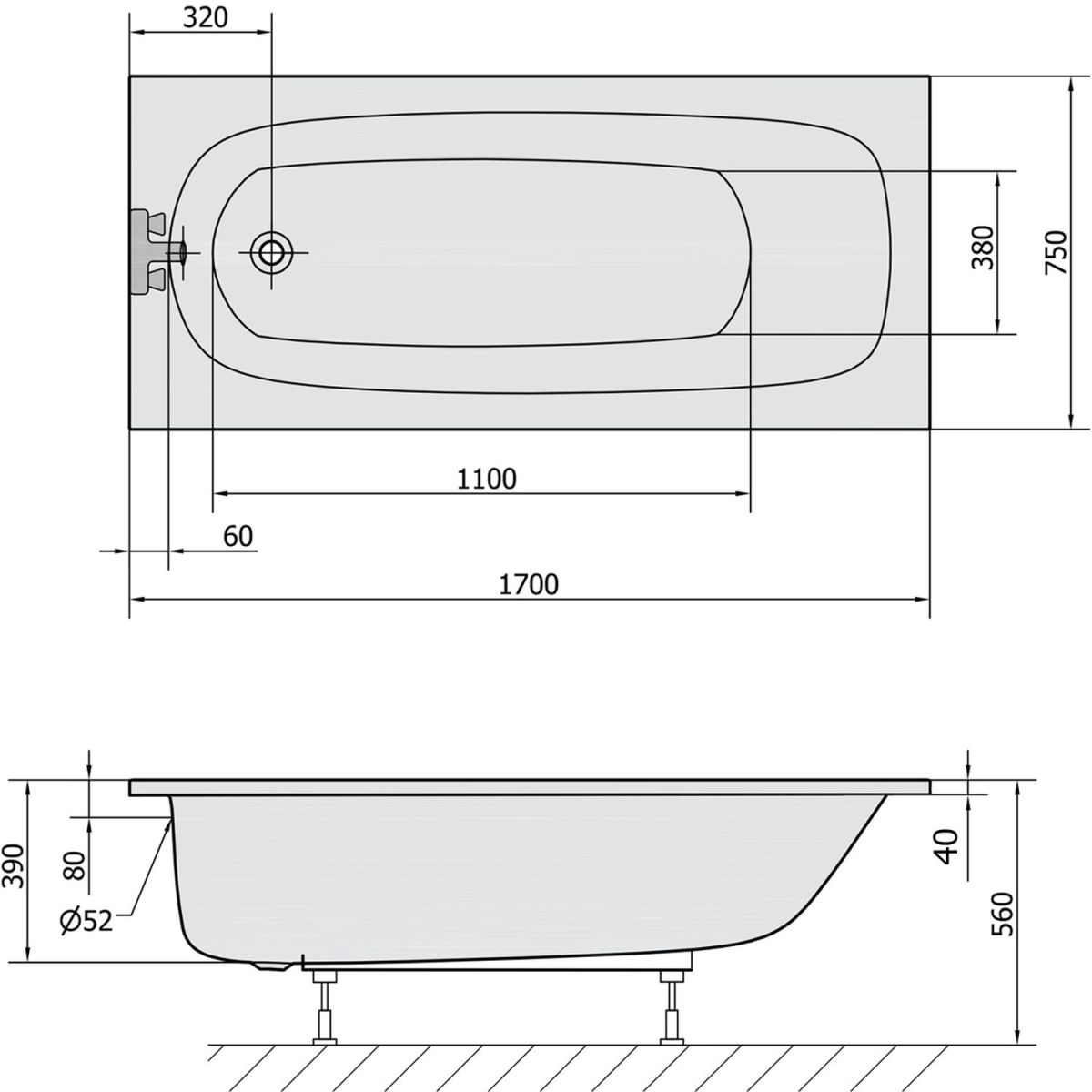 Polysan Ebro Rechteckige Badewanne 170x75 cm weiß 26711