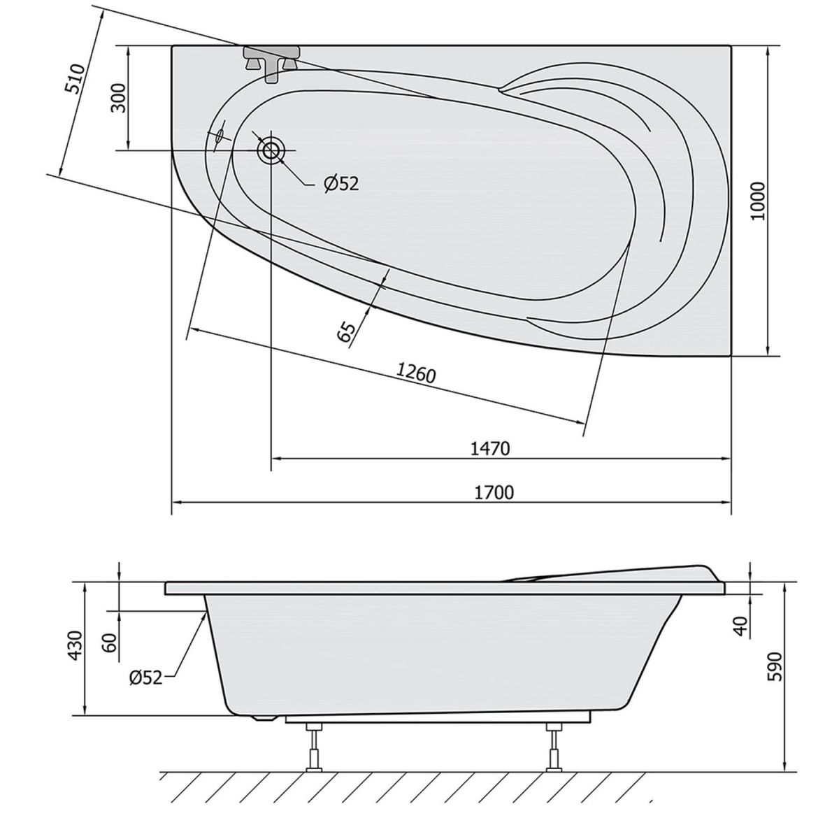 Polysan Evia Eckbadewanne 160x100 cm rechtsseitig weiß 12611