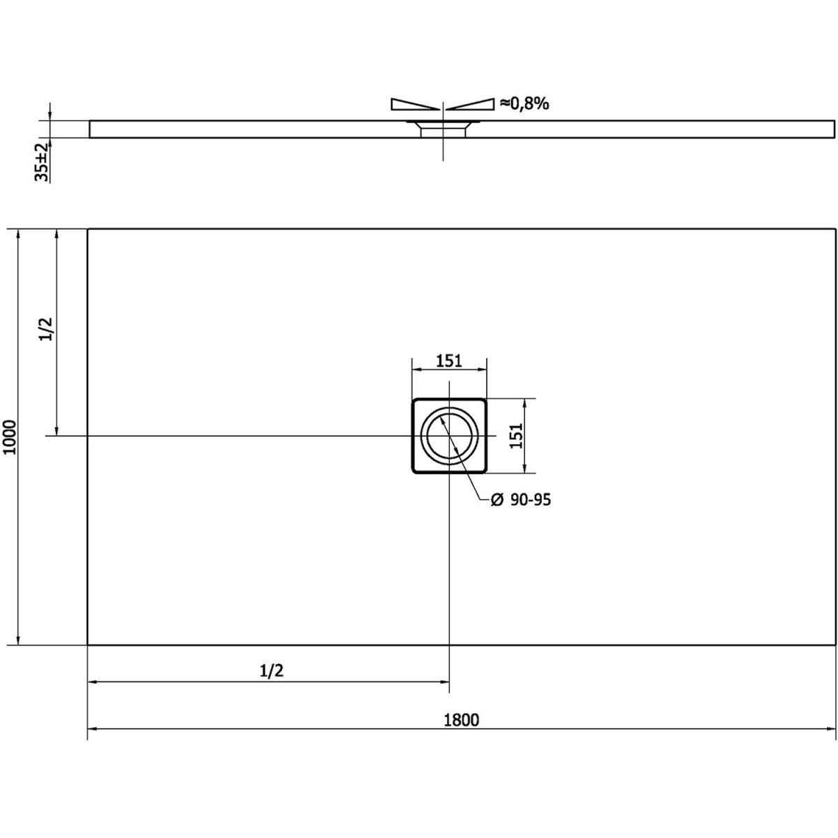 - Die Position der Öffnung für den Siphon ist fest und kann nicht verändert werden. Aufgrund der Festigkeit der Duschwanne wird empfohlen, den möglichen Schnitt mindestens 15 cm vom Mittelpunkt des Siphons entfernt vorzunehmen
