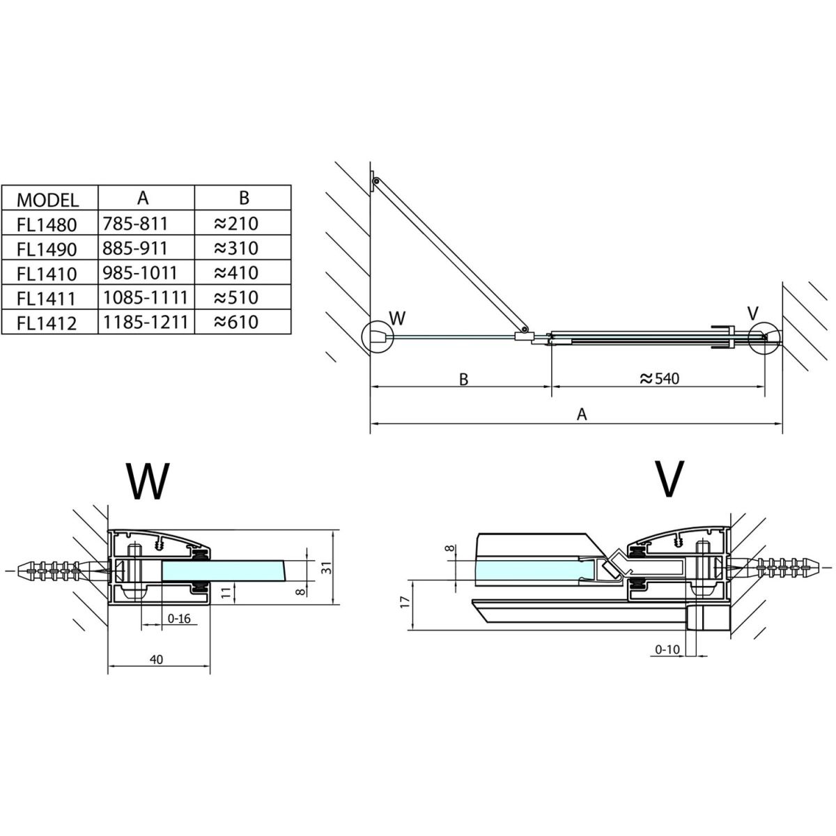 - einfache Installation dank verstellbarem Wandprofil 0-16 mm