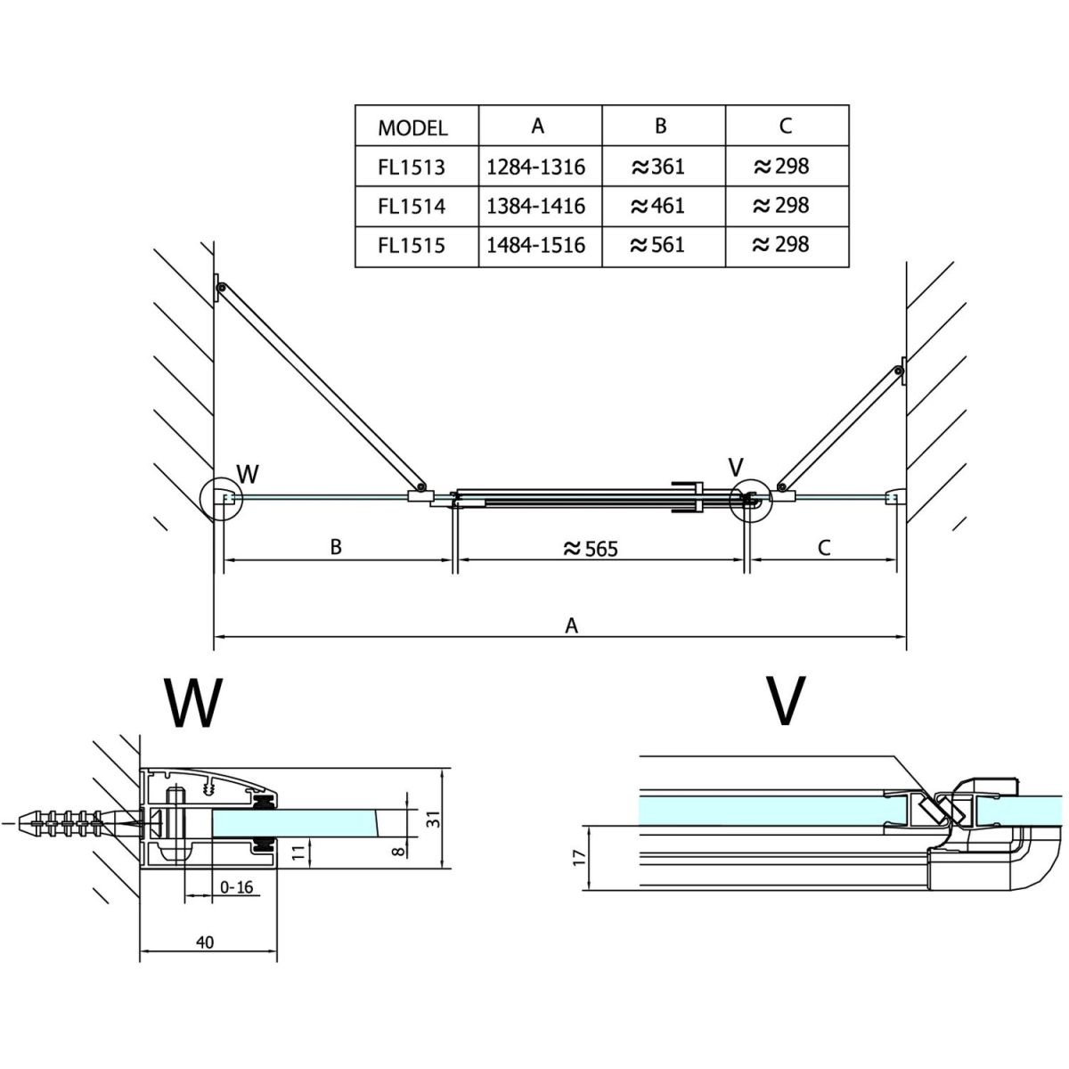 Polysan Fortis Line Duschtüren 150 cm aufklappbar chrom Glanz/durchsichtiges Glas FL1515L