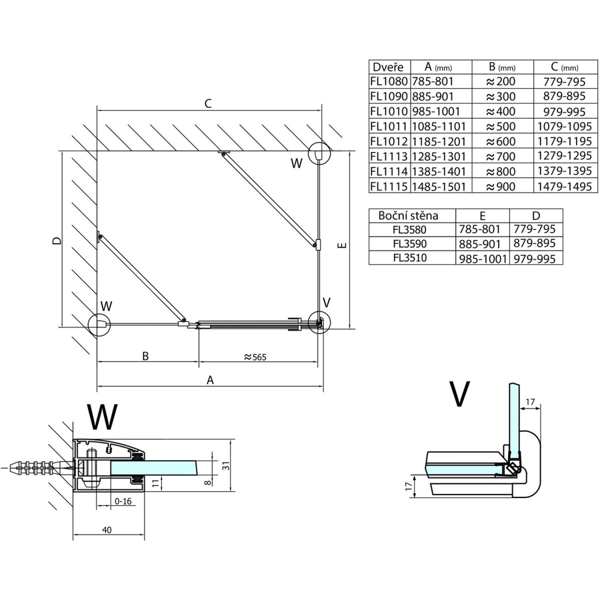 Polysan Fortis Line Duschwand 100 cm chrom Glanz/durchsichtiges Glas FL3510