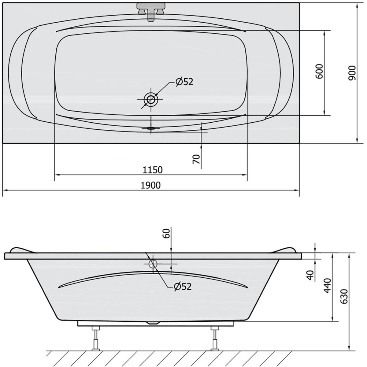 - Durchmesser des Abflusses: 52 mm