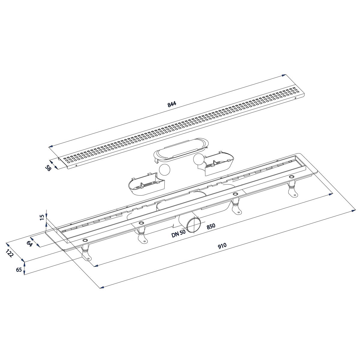 - Durchmesser des Abflusses: 50 mm