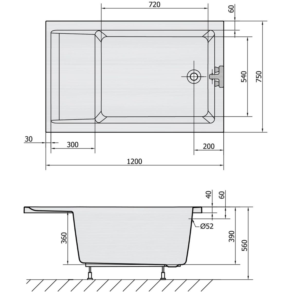 Polysan Jazz Rechteckige Badewanne 120x75 cm weiß 72913