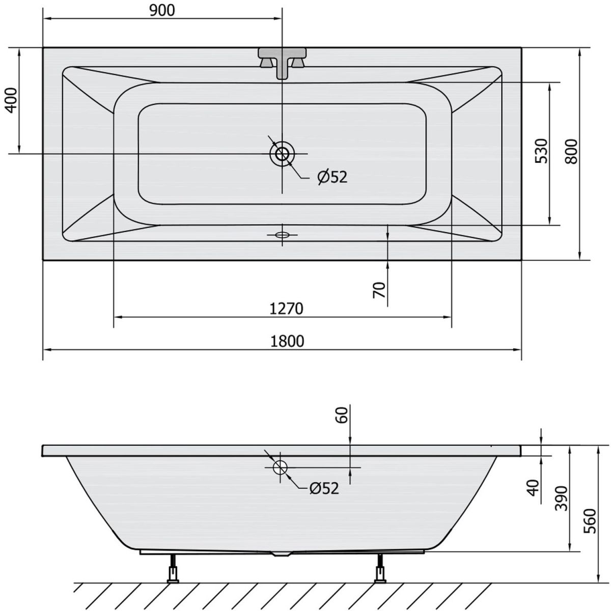 - Durchmesser des Abflusses: 52 mm