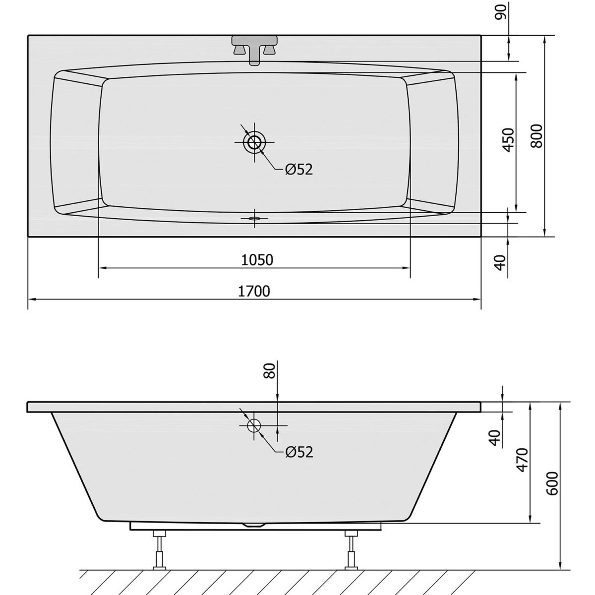 Polysan Kvadra Rechteckige Badewanne 170x80 cm weiß 18711