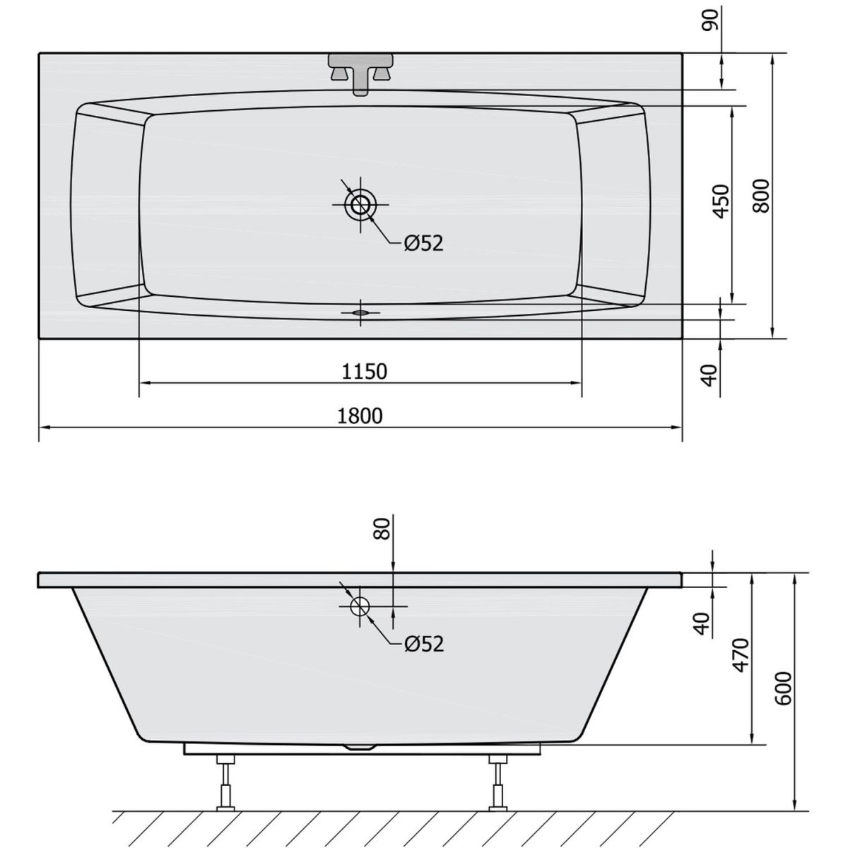 Polysan Kvadra Rechteckige Badewanne 180x80 cm weiß 17711