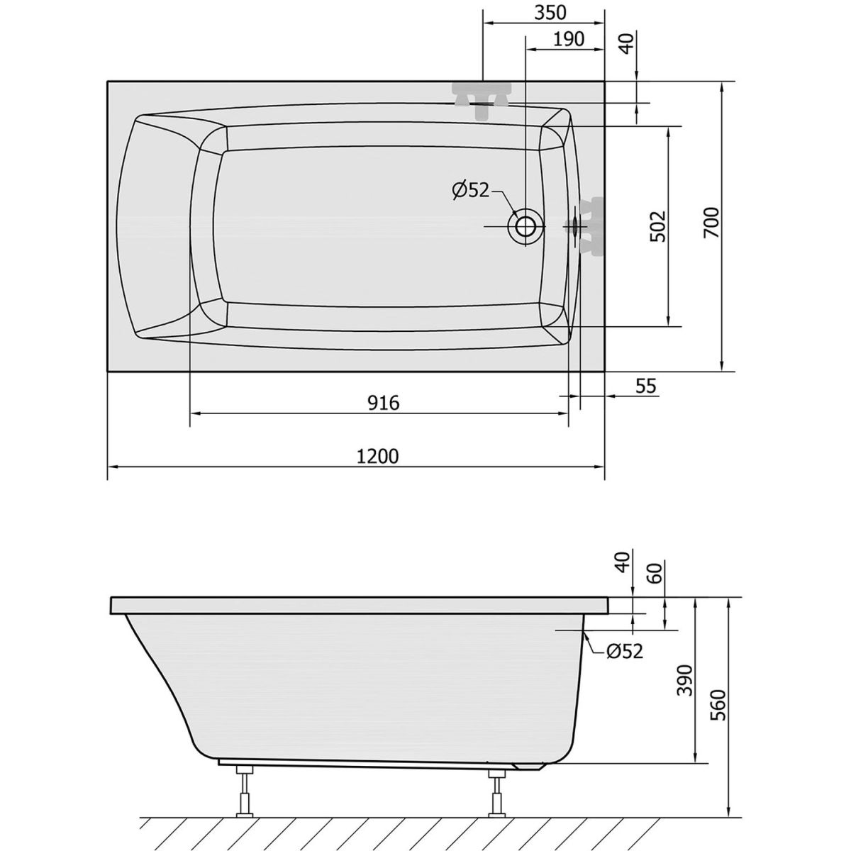 Polysan Lily Rechteckige Badewanne 120x70 cm weiß 25111