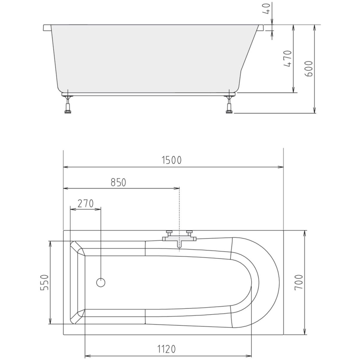 Polysan Lisa Rechteckige Badewanne 150x70 cm weiß 85111