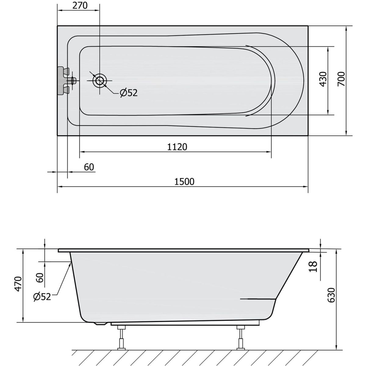 Polysan Lisa Schlanke rechteckige Badewanne 150x70 cm weiß 85111S