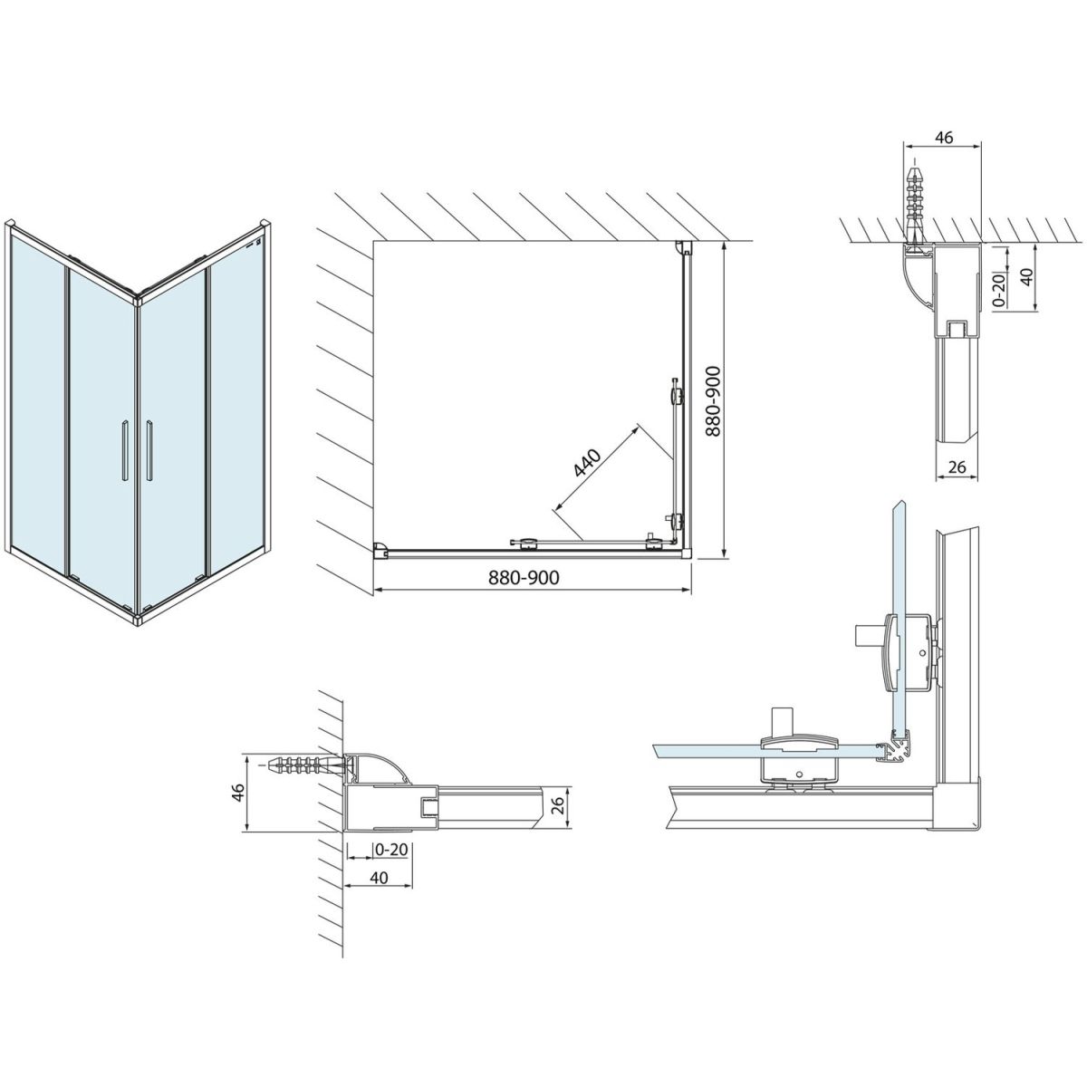 - einfache Montage dank ausziehbarem Wandprofil im Bereich von 0-20 mm