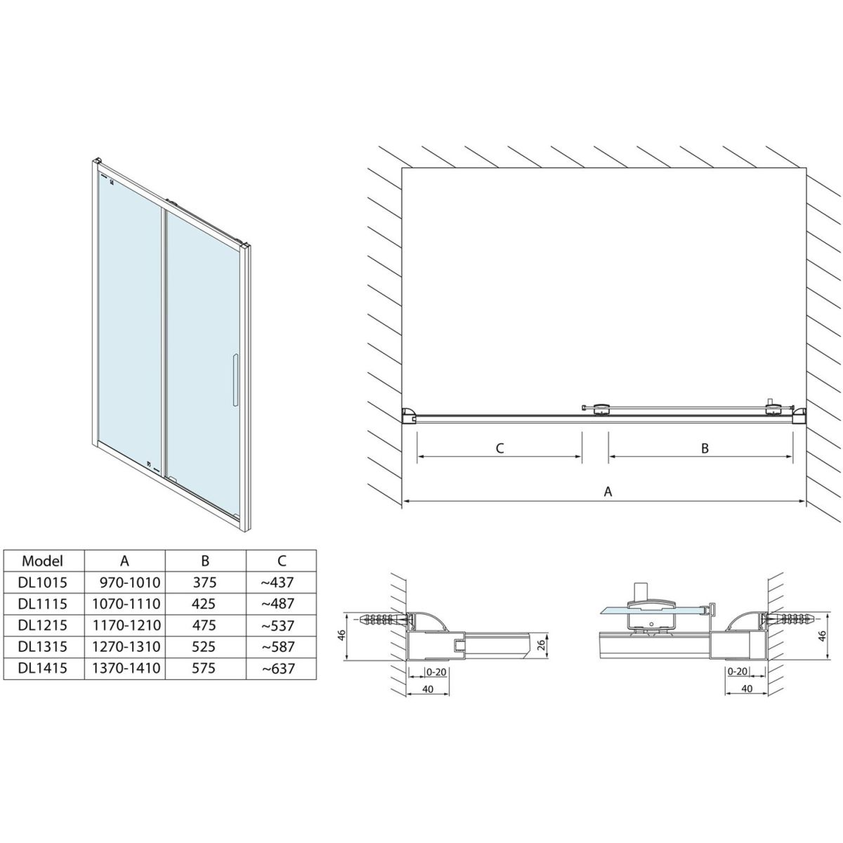 - einfache Montage dank ausziehbarem Wandprofil im Bereich von 0-20 mm