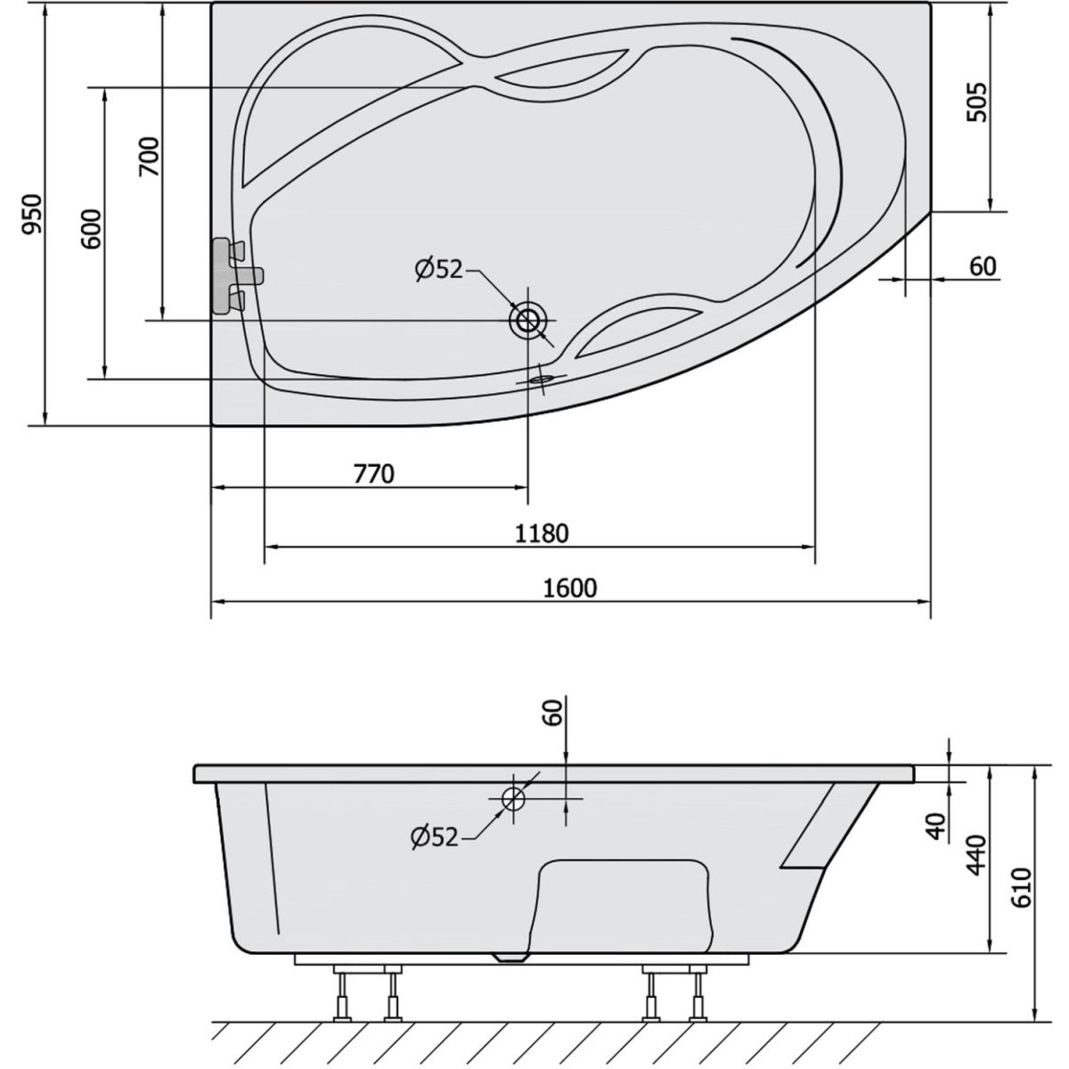 Polysan Mamba Eckbadewanne 160x95 cm linksseitig weiß 27111