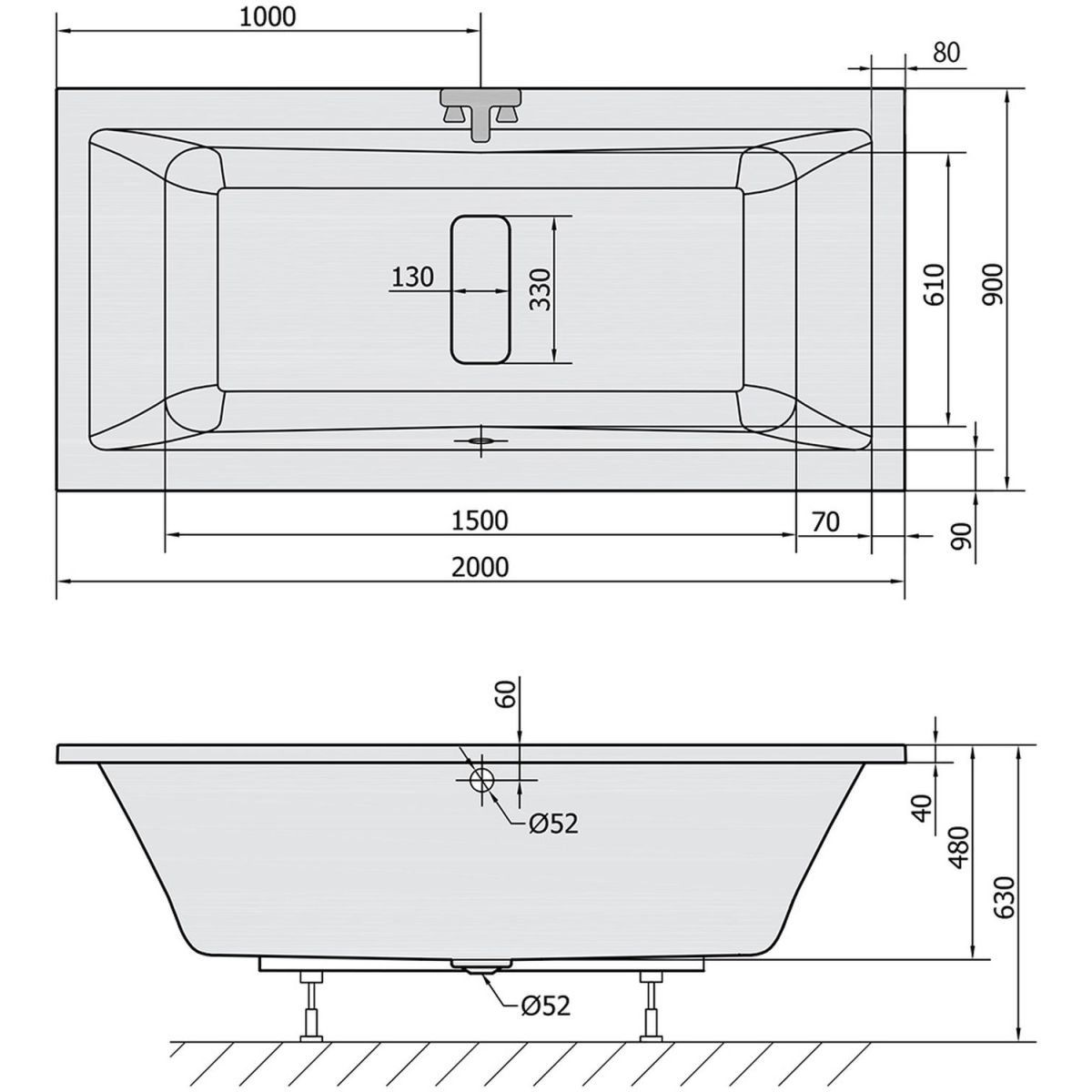 Polysan Marlene Rechteckige Badewanne 200x90 cm weiß 78731