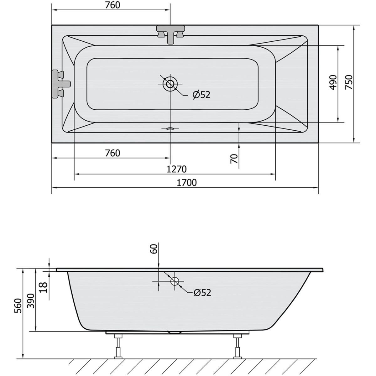 Polysan Mimoa Rechteckige Badewanne 170x75 cm weiß 71709S