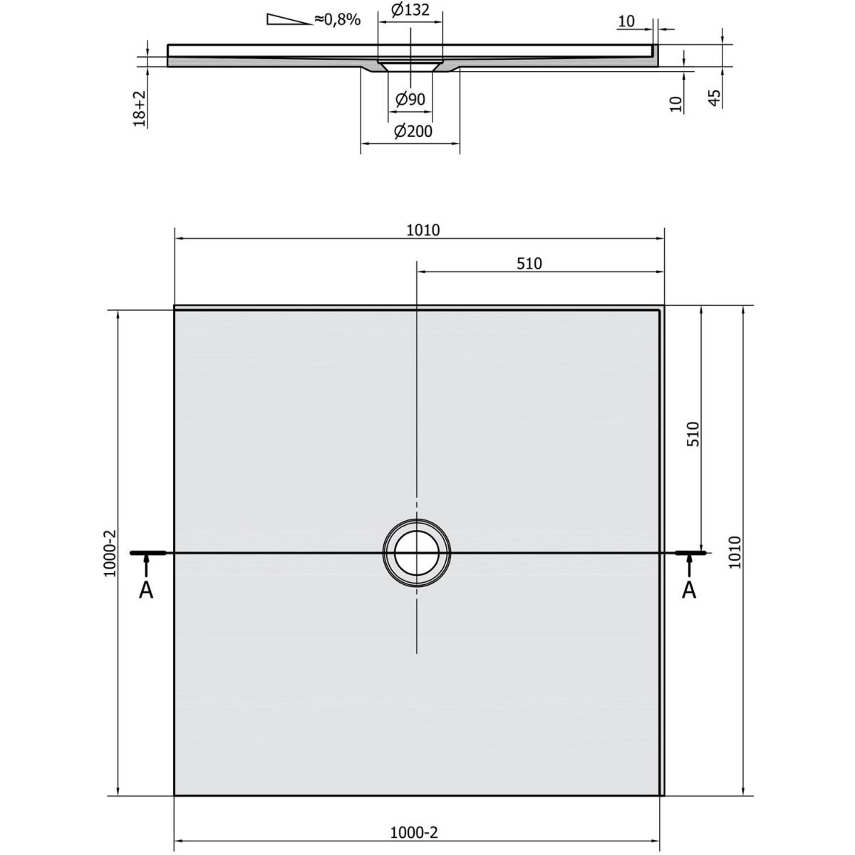 - Mit erhöhtem Rand für einen nahtlosen Übergang zu den Fliesen Das Wasser fließt auf natürliche Weise von der Wand in die Duschwanne