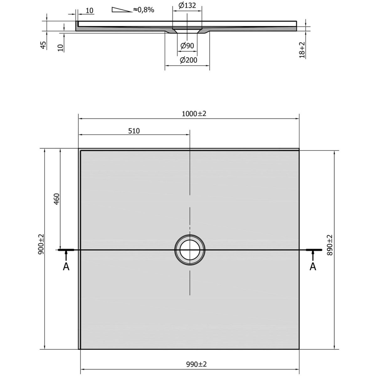 - Abflussdurchmesser: 90 mm