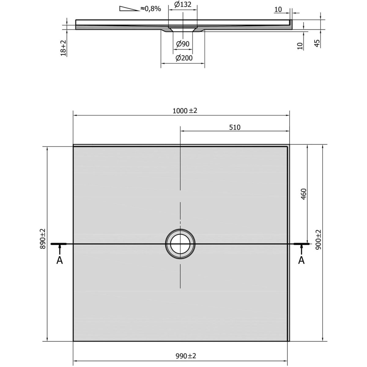 - Ablaufdurchmesser: 90 mm