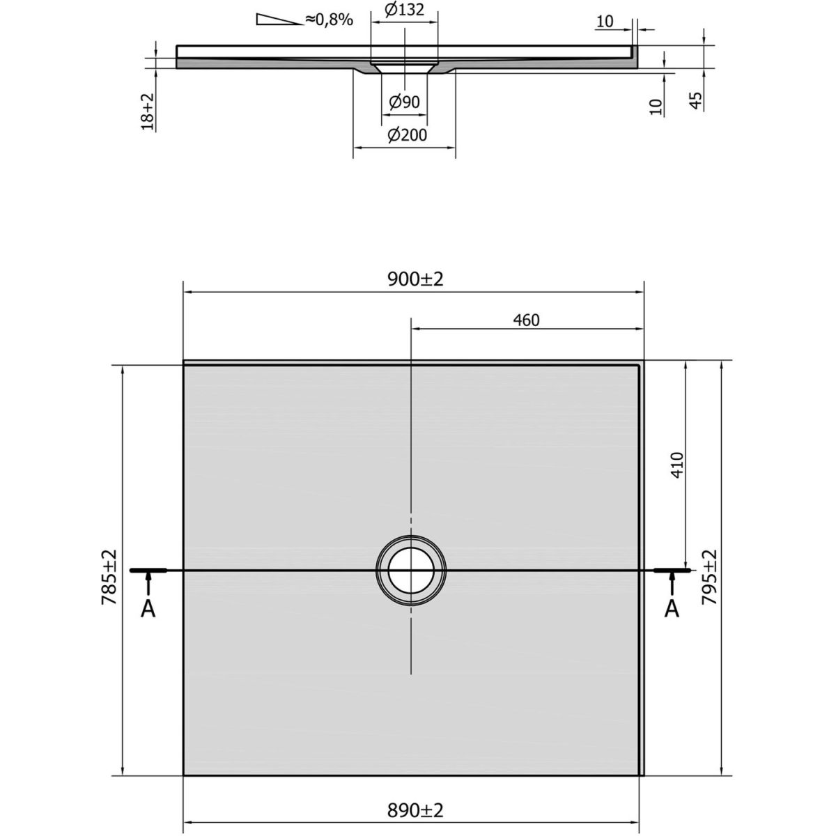 - Abflussdurchmesser: 90 mm