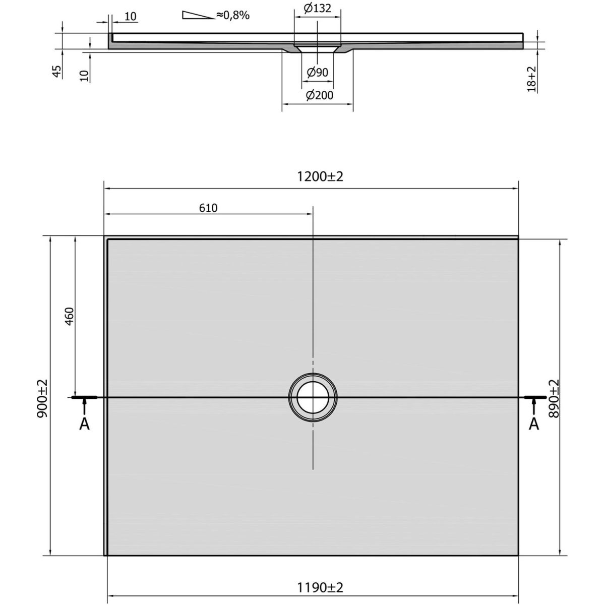 - Mit erhöhtem Rand für einen nahtlosen Übergang zu den Fliesen Das Wasser fließt auf natürliche Weise von der Wand in die Duschwanne