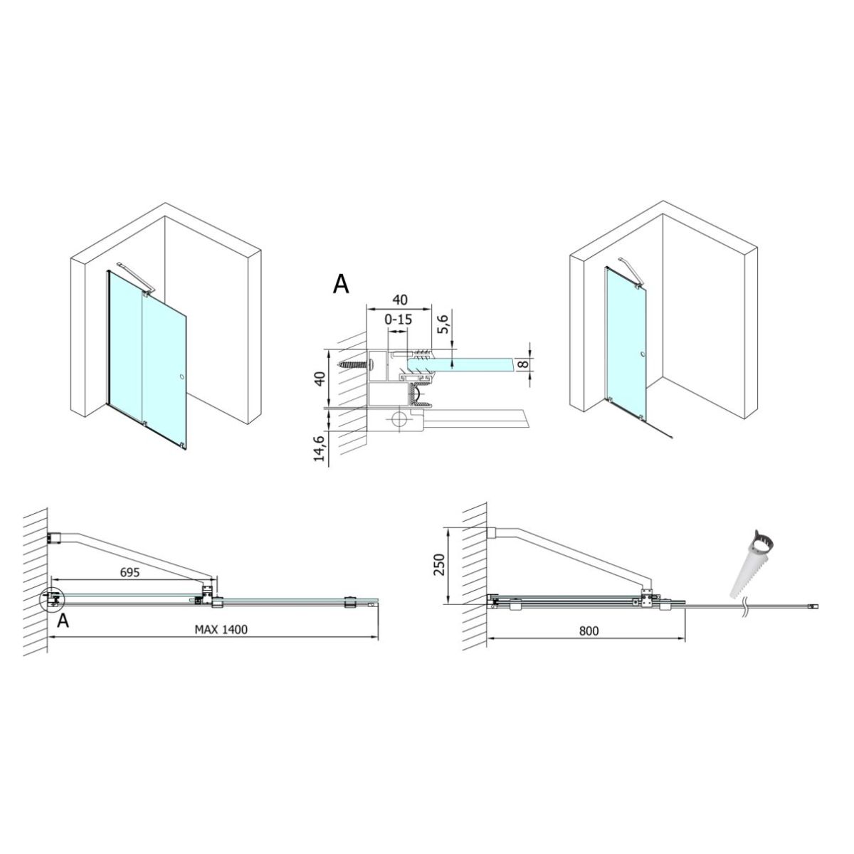 - Einbaumaß: 80-140 cm
