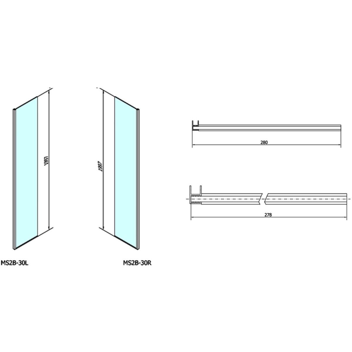 - Um eine L-förmige Walk-In-Kabine zu schaffen, ist für die Befestigung der Wand eine zusätzliche feste Wand MS2A (separat erhältlich) erforderlich