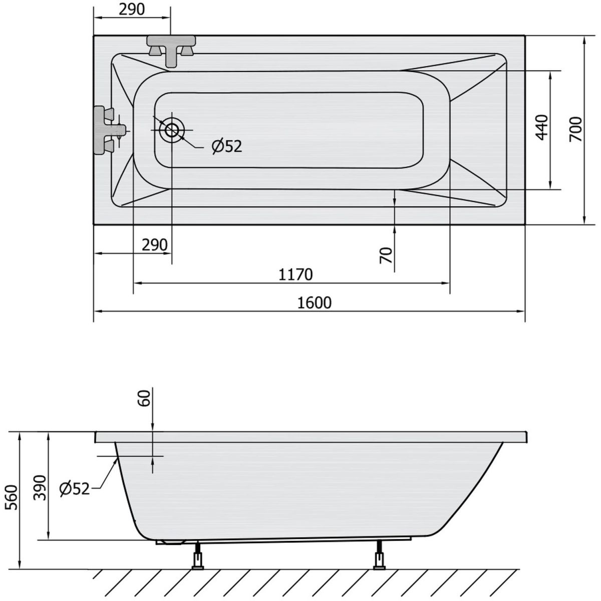 Polysan Noemi Rechteckige Badewanne 160x70 cm weiß 71707
