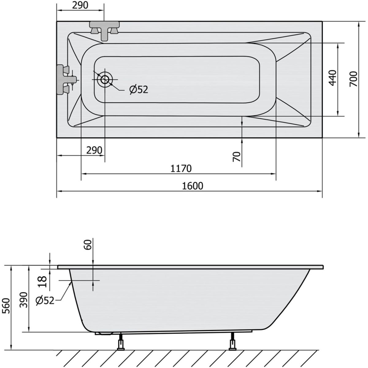 Polysan Noemi Schlanke rechteckige Badewanne 160x70 cm weiß 71707S