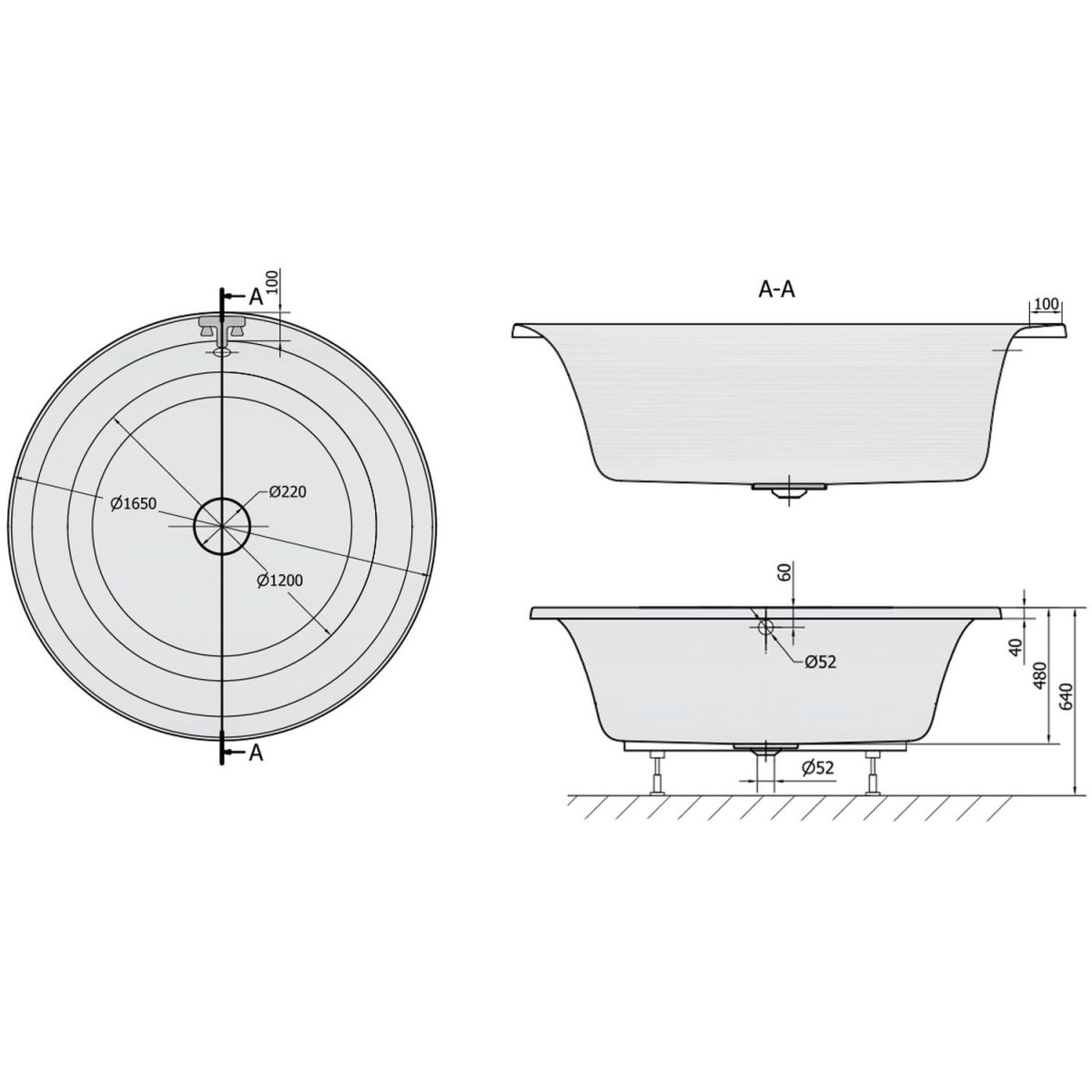 Polysan Oblo Runde Badewanne 165x165 cm rund weiß 72840
