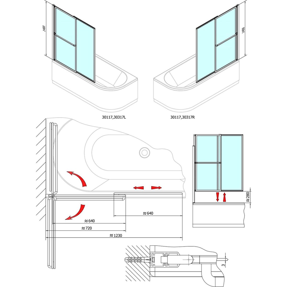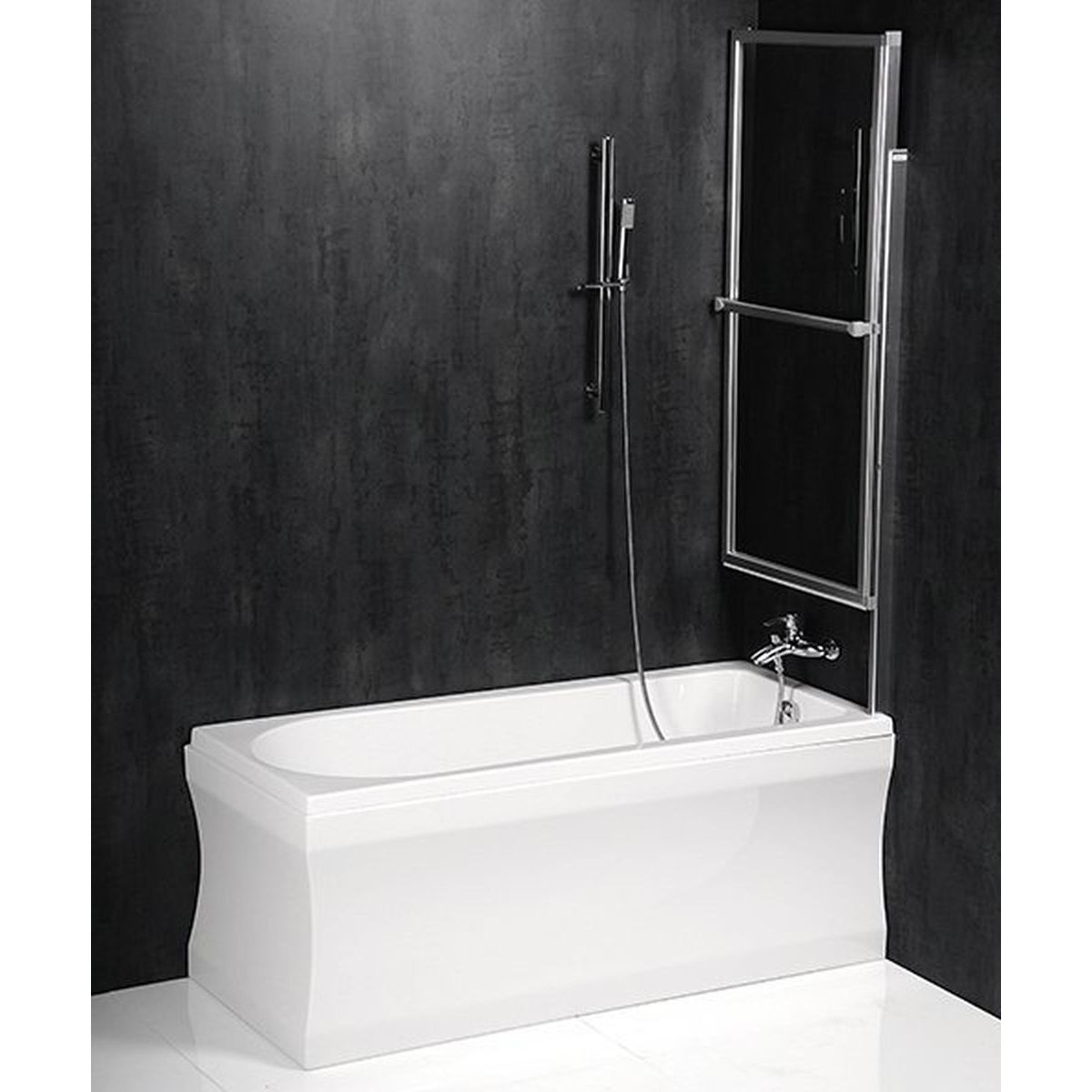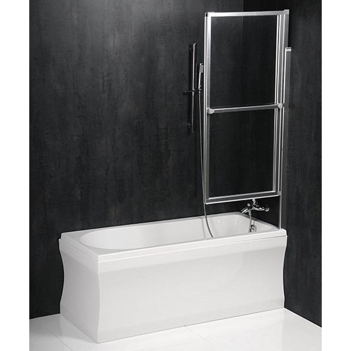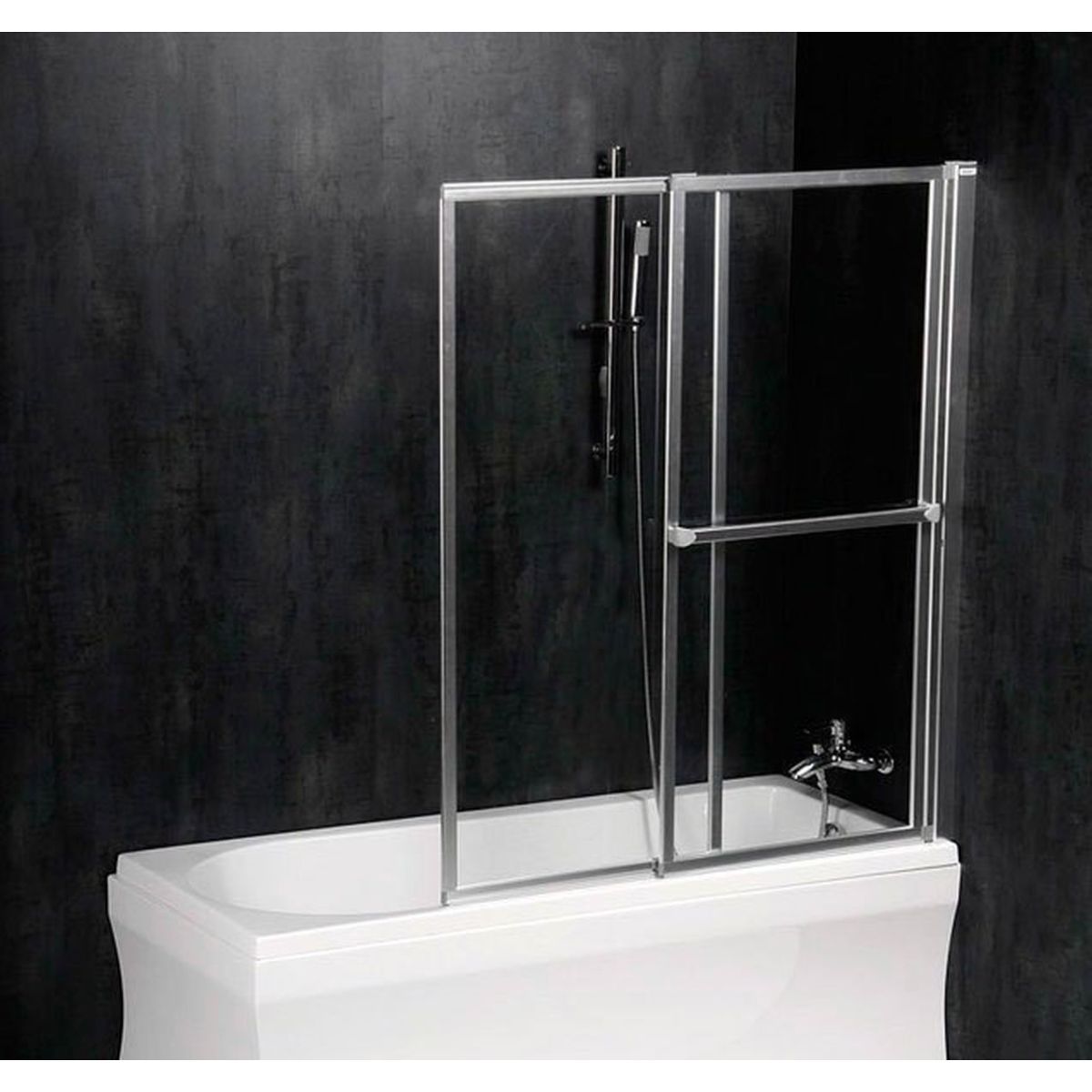 Polysan Olbia Badewannenabtrennung 123 cm zweigeteilt silber Glanz/durchsichtiges Glas 30317