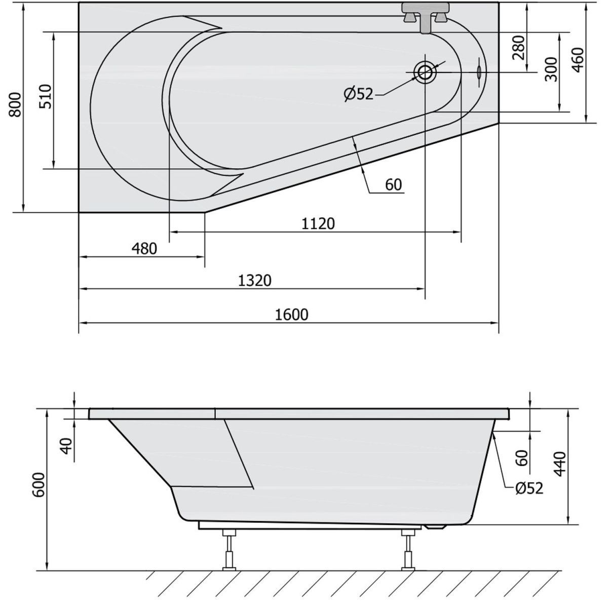 - Abflussdurchmesser: 52 mm